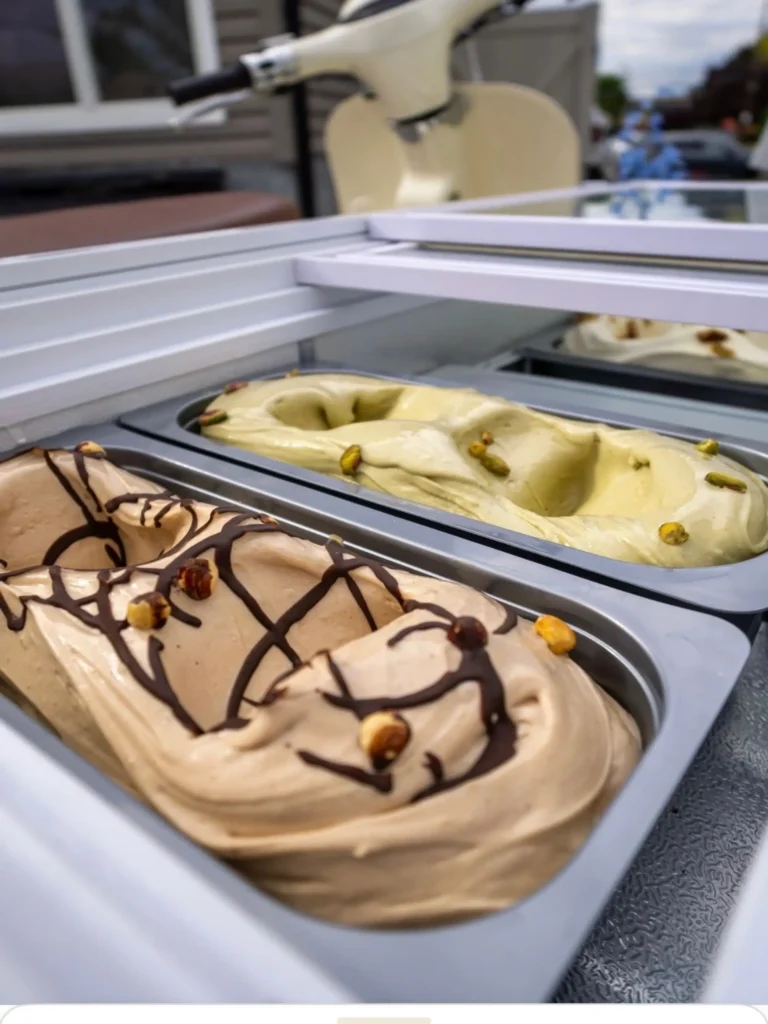 A vintage Vespa-style cart serving artisanal Italian gelato, perfect as a refreshing dessert option or a standalone feature at any event.